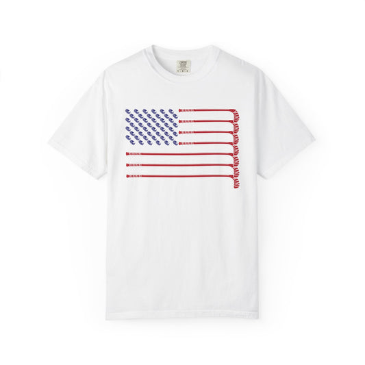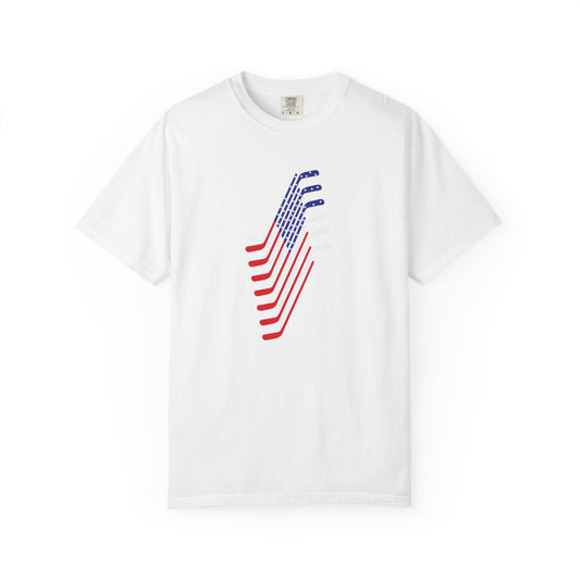 USA Hockey American Flag T-Shirt – Patriotic Ice Hockey Graphic Tee – Team USA Red White Blue Short Sleeve Fan Shirt