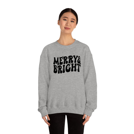 Merry and Bright Retro Lettering Design on Unisex Heavy Blend™ Crewneck Sweatshirt