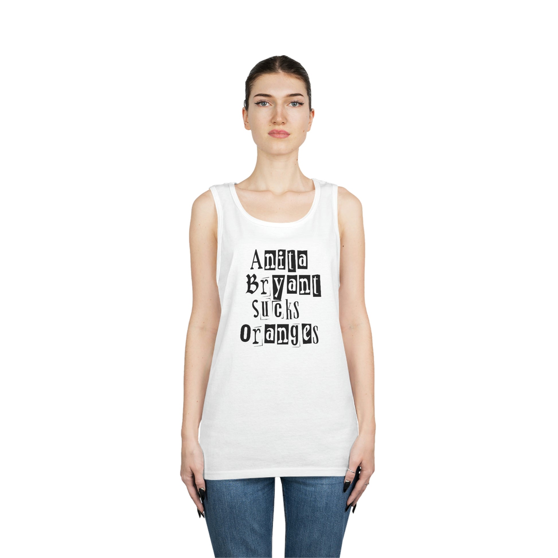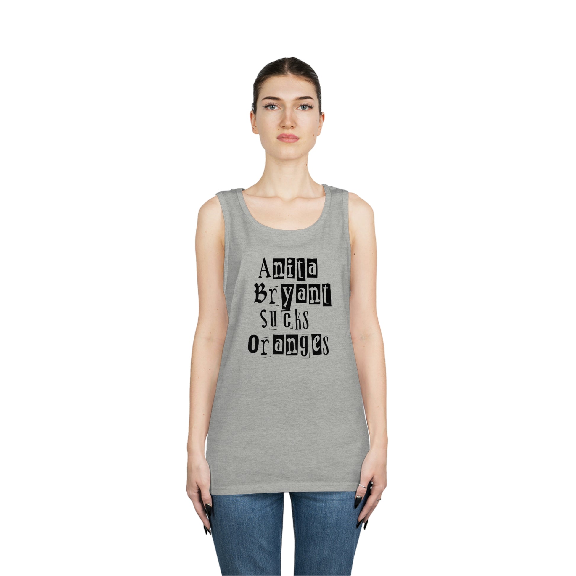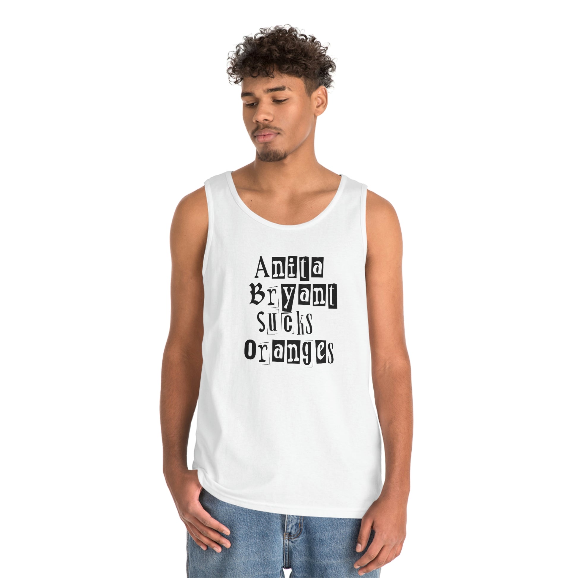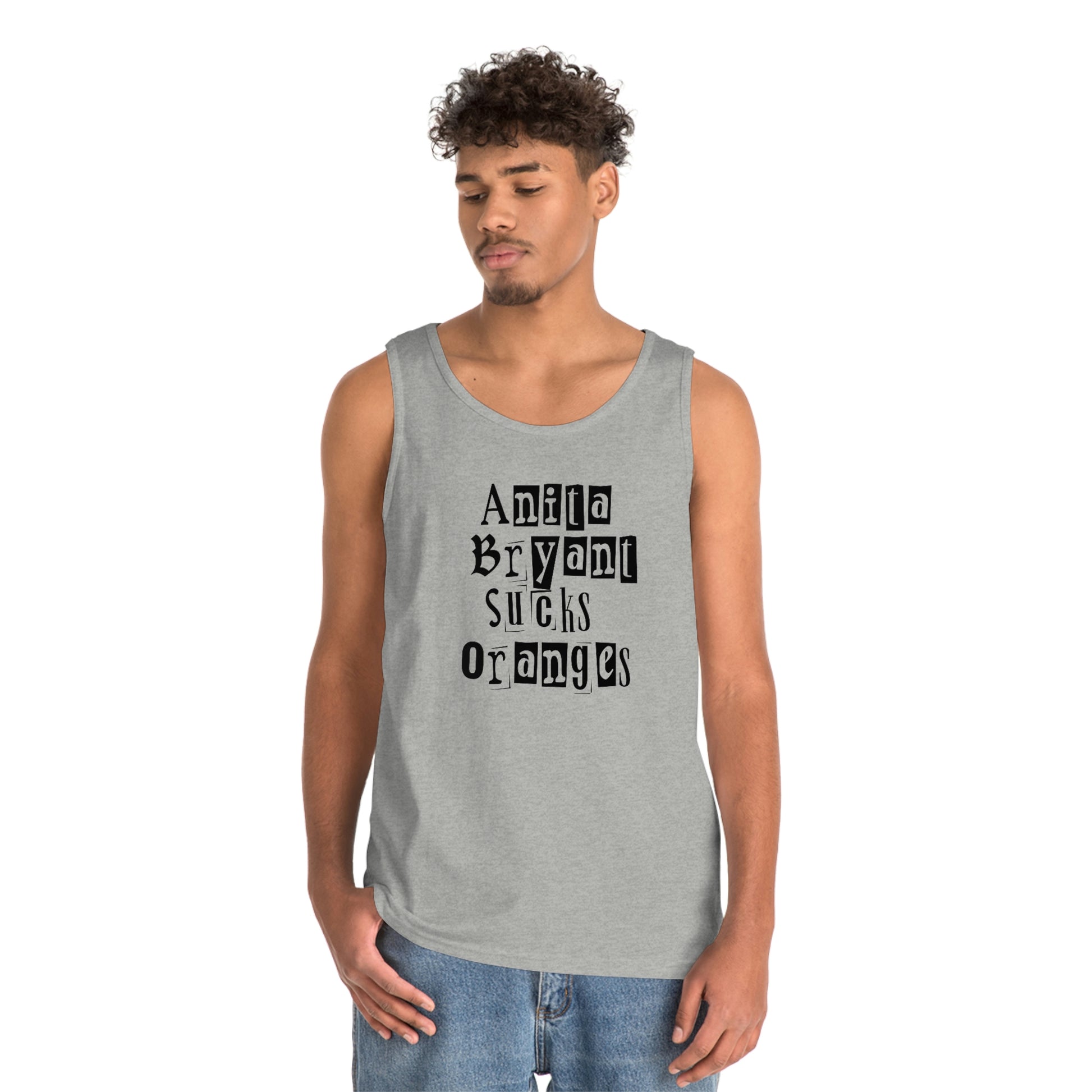 Welcome to our store and be proud to show your support for the LGBTQ+ community in the trendiest way possible with our Anita Bryant Sucks Oranges Two Sided Tank Top! This high-quality tank is sure to turn heads with its bold and colorful design. Featuring a bright rainbow on the back of the shirt with the famous phrase “Anita Bryant Sucks Oranges” printed in the center, this tank will let everyone know where you stand when it comes to LGBTQ rights.